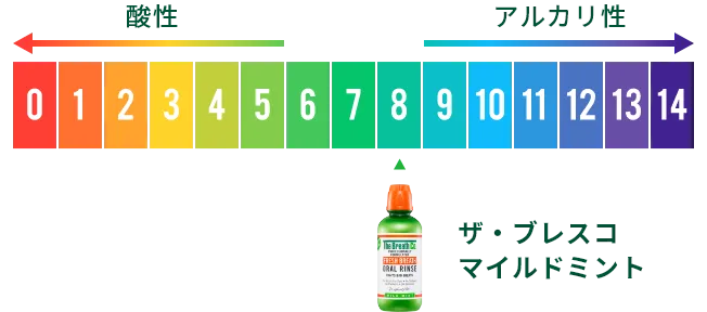 ザ・ブレスコは歯のエナメル質の脱灰が起こりにくいpH値に着目した製品開発を行っています。